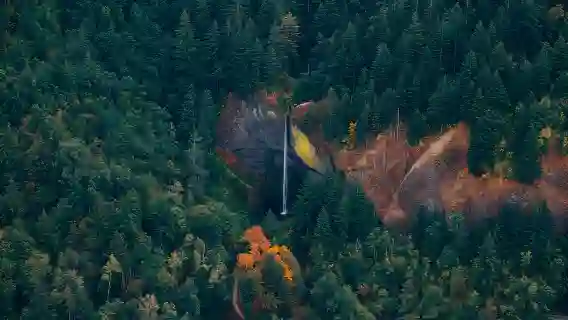 폭포, 강, 숲의 아름다운 전망을 감상하세요