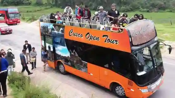 이 인상적인 버스를 타고 쿠스코 시의 거리를 걸어보세요.