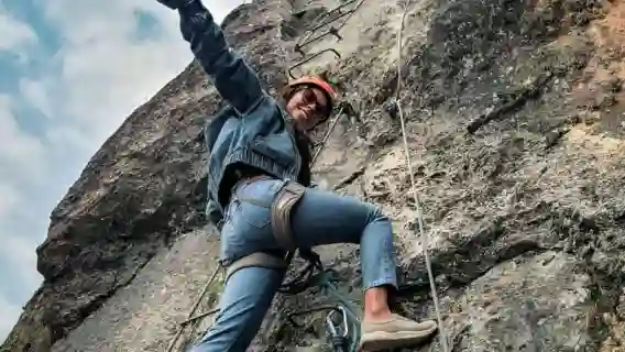 금속 계단을 이용해 비아 페라타를 통해 최대 45m까지 올라가세요.