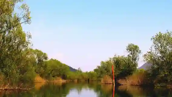 갈대와 버드나무 줄로 둘러싸인 작은 강물을 따라 항해해 보세요.