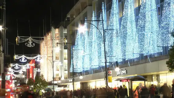오픈탑 버스를 타고 가이드 투어를 통해 런던 크리스마스 조명의 마법을 탐험해보세요