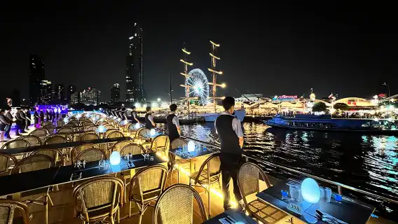 차오프라야 강을 따라 크루즈를 타며 뷔페 저녁 식사를 즐겨보세요.