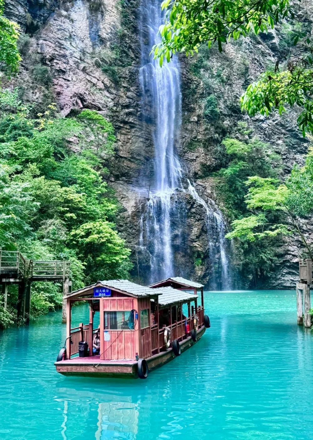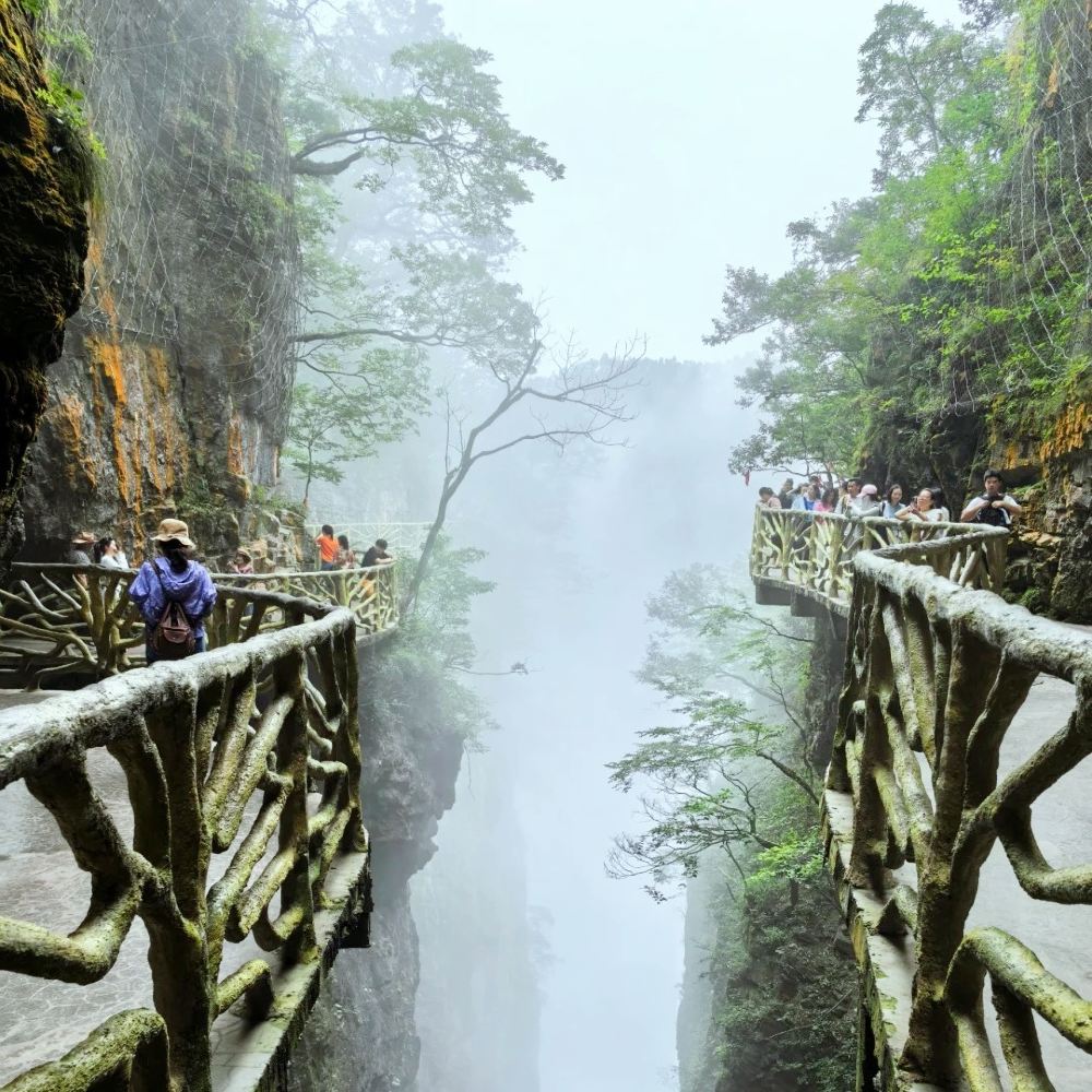 윈티안두 유리 다리에 올라 협곡 위를 공중에 떠 있는 듯 걷다 보면, 발아래 끝없는 심연과 함께 협곡의 장관이 한눈에 펼쳐집니다. 이어서 유리 데크에 들어서면 다리의 전경을 멀리 바라보며 마치 공중을 걷는 듯한 느낌을 받을 수 있습니다. 레인보우 호수에 도착하면 산으로 둘러싸인 호수 위에서 배를 타고 물결이 반짝이는 풍경을 즐길 수 있습니다. 이후 도보 또는 선택 활동을 통해 깊은 협곡 속으로 들어가 신세탐계 · 유리몽 · 모모동과 같은 기이한 경관을 만나게 됩니다. 마지막으로 신천호에서 무료 배를 타고 여유롭게 출구로 향하며 여정을 완성하게 됩니다.