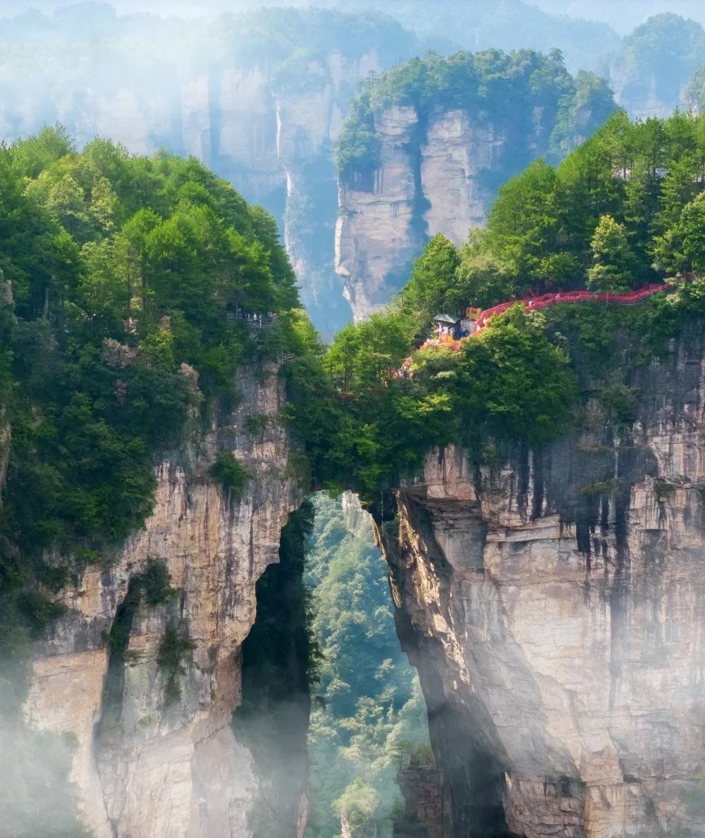 한 코스로 케이블카, 운정불사, 유리 스카이워크, 천문동, 운몽선봉 등 아름다운 경치를 모두 즐길 수 있어, 천문산의 스릴 넘치고 웅장하며 아름다운 풍경을 한 걸음 한 걸음 감상할 수 있습니다.