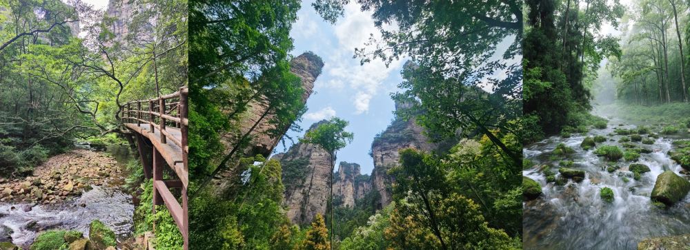 크고 작은 20~30개의 관광지가 분포되어 있으며, 미혼대는 시야가 매우 좋고, 건곤주는 아바타의 공중부양산 촬영지이며, 마지막으로 천하제일교를 관광합니다.