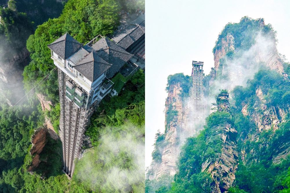 9시 30분에 관광명소에 도착하여 백룡(바이롱) 엘리베이터를 탑니다.