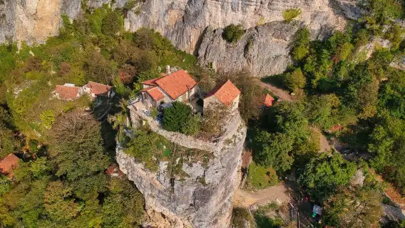 천년의 역사를 간직한 므그비메비 동굴 수도원을 방문해 바위 벽 속의 종적 고요함과 조지아 정교회 문화의 전통을 느껴보세요.